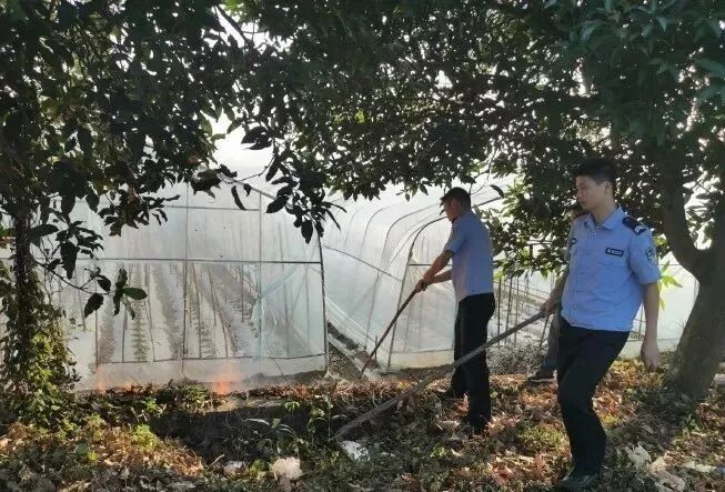 民警立即赶至现场,原来山火系因附近菜棚乱扔烟头引起垃圾堆着火,并引燃旁边的树木、落叶、塑料大棚,所幸火势还未变大,民警就地取材用长树枝将落叶等易燃物品与火源隔离开,并及时将山火扑灭。民警提示:入秋后天气干燥,山间林地草木茂盛,群众请勿随意丢弃烟头等火源!