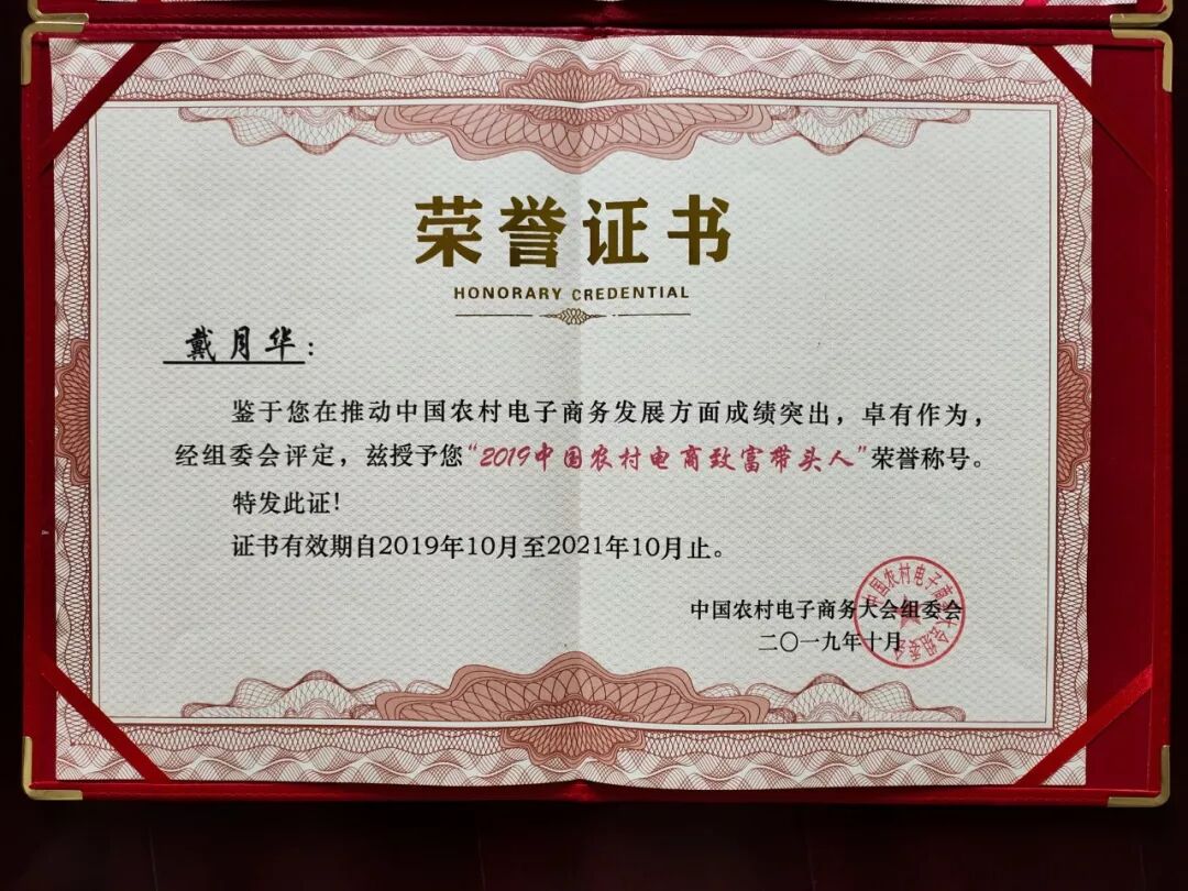 安远县百山源生态农业有限公司执行董事戴月华荣获“2019中国农村电商致富带头人”称号。安远县电子商务办从全国众多的电商平台中脱颖而出,获得“2019中国农村电商致富带头人优秀组织奖”。