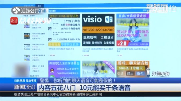 记者调查发现,在某电商平台,仅需10元就可买到1000条女声的微信语音信息。安装了能转发语音信息的微信插件后,就可以将这些不属于自己的声音信息发送给他人,如果想要其他内容,还可以按照2元每条的价格进行私人定制。