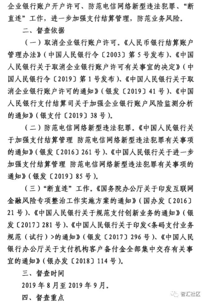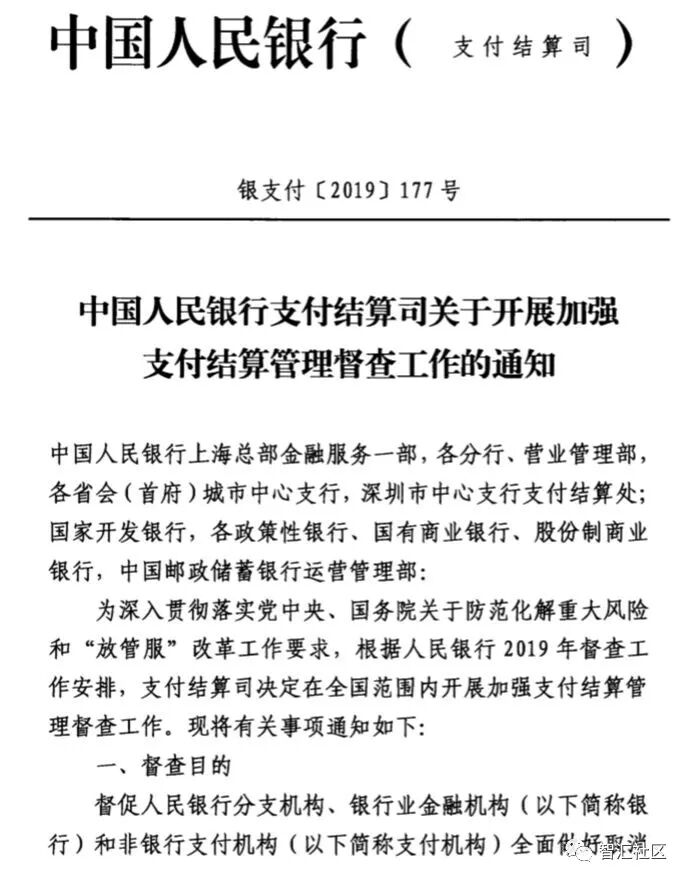 近期,央行支付结算司发布《关于开展加强支付结算管理督查工作的通知》(银支付【2019】177号),通知表明,央行将在全国范围内开展加强支付结算管理督查工作,现场督察2019年9月前完成。