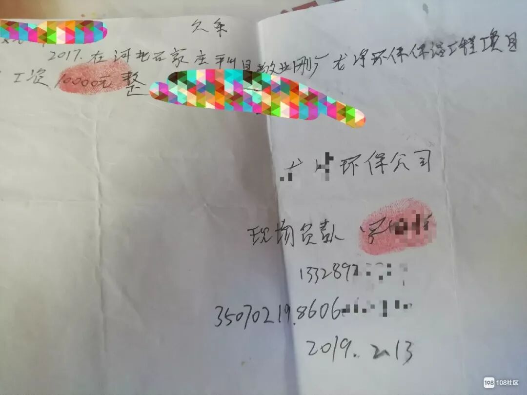 因为这人开票在某公司,工程款所有的钱要经过这公司的账号,好几百万的工程款大部分都被他拿去了,就剩下10几万。今年8月份,某公司就联系每个人去拿工资,大家都只能拿到一半的工钱。我父亲就拿了5000回来。