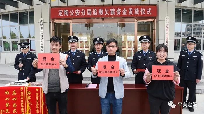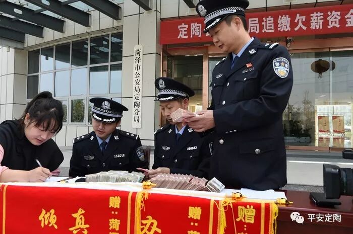 领到自己被拖欠的血汗钱的群众激动不已,对民警的忠诚履职和不懈努力深表感激,连声道谢。定陶公安分局在顺利破获一起欠薪案的同时,最大限度的挽回了群众的损失,稳定了社会治安秩序,取得了良好法律效果和社会效果的统一。来源:平安定陶