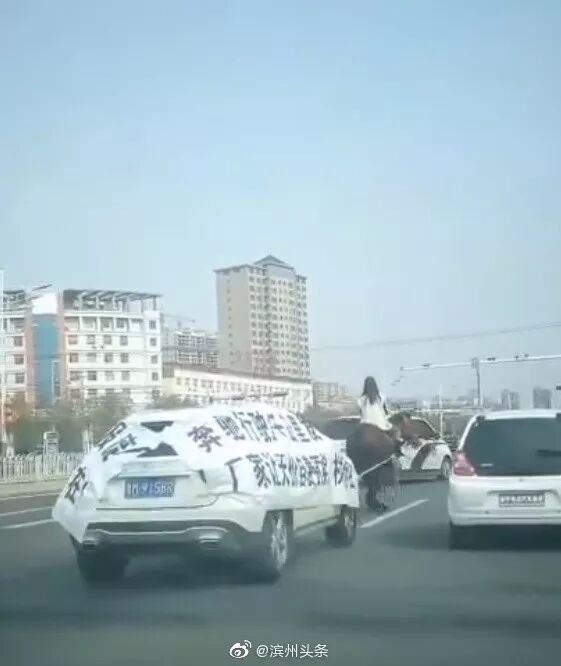 为维权?滨州一女子骑马拖奔驰车游街...【附视频】