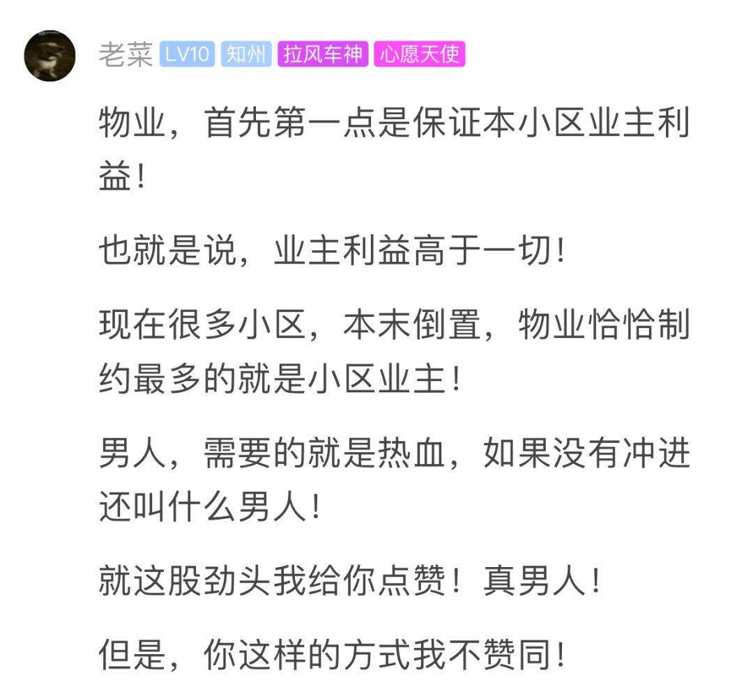 小区的其他住户也发声了,大部分业主表示这起事件中他们站在物业这边。