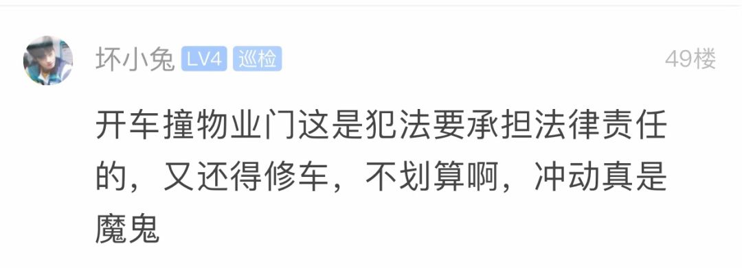 小区车多位少,停车还真是个难题,需要业主和物业共同努力。这位开车冲门的男子,因为自己的冲动行为已被民警带到派出所做调查。