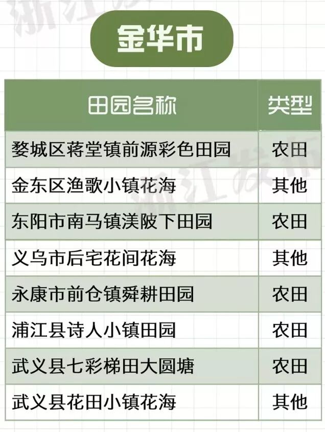 近日,省农业农村厅、省文化和旅游厅公布了2019年浙江省100个“最美田园”、浙江省110条休闲农业与乡村旅游精品线路的名单。金华有8处田园和10条旅游精品线路入选,快来看看都是哪儿吧!