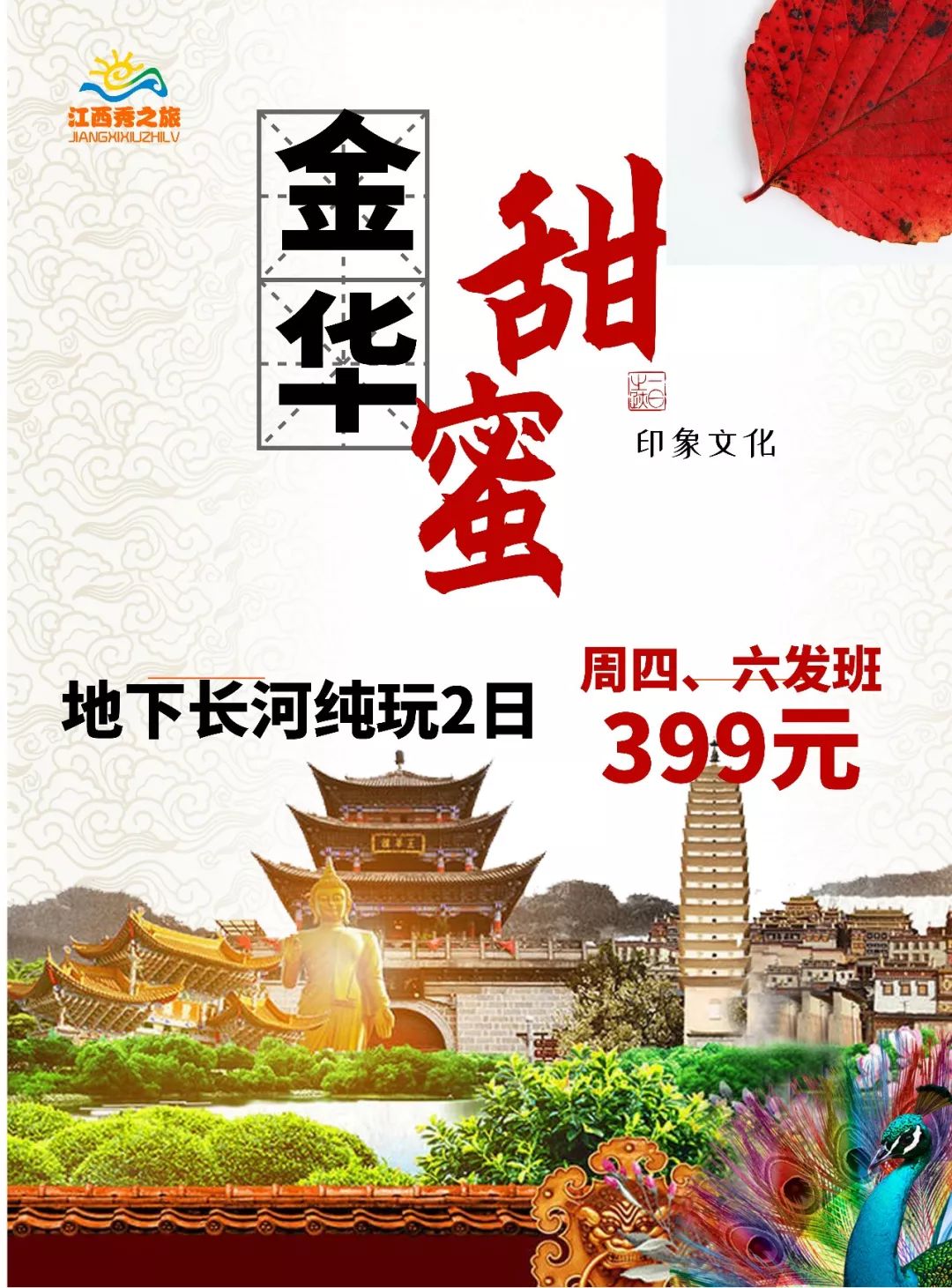 D1:上海指定地点(市区、郊区都有上车点)乘汽车赴金华,游览【国际研学村琐园 门票50元赠送 约1.5小时】被称作“奇村”,一是其环境风貌如古代一把长命锁,二是至今还保存许多明末清初的古建筑。琐园,也是15个国家的国旗迎风摇曳的国际村,到处还存留着海外学子生活过的印记,它上过哈佛大学教案,也在蒙古杂志露过脸,还被美国内华达州报、印度时报点赞。自2015年琐园成功举办首批"海外学子走进金华古村落"活动以来,琐园声名鹊起。景区先后建设了非洲,欧洲,东南亚文化沙龙馆,打造了年画主题馆,非遗体验馆,红色馆,鲁兵儿童文学馆等一系列旅游景点,琐园成为以国际研学为特色的中西融合的古村落典范。琐园,记得住乡愁,容得了世界。琐园景区所打造的"国际研学,锁园范本",搭起了传统与现代,东方与西方文化交融的桥梁,吸引着无数中外游客慕名而来。之后游览【常年18℃兰溪地下长河 门票85元赠送,船筏联游约1.5小时】被誉为"全国洞府航游之冠"的地下长河。以山美、水秀、洞奇、为特色,全长2500米,洞内星罗棋布散布着 各种惟妙惟肖的大自然杰作。洞内一条长逾千米的地下长河常年流水不断,清澈见底,游人既可乘舟揽胜又可步行。