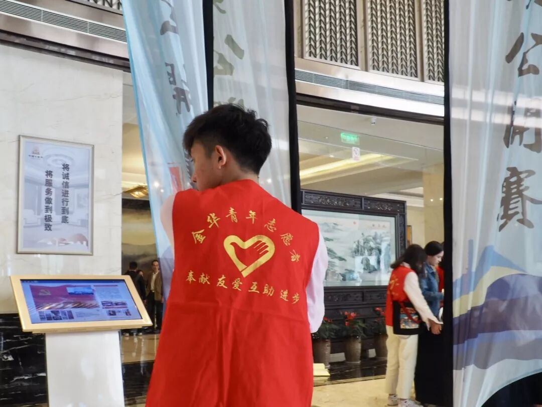 雷迪森伟达酒店的志愿者们负责接驳大巴指引,选手检录,赛事包发放,还有赛事说明会,志愿者们形成了流水线服务,有序的完成着工作。