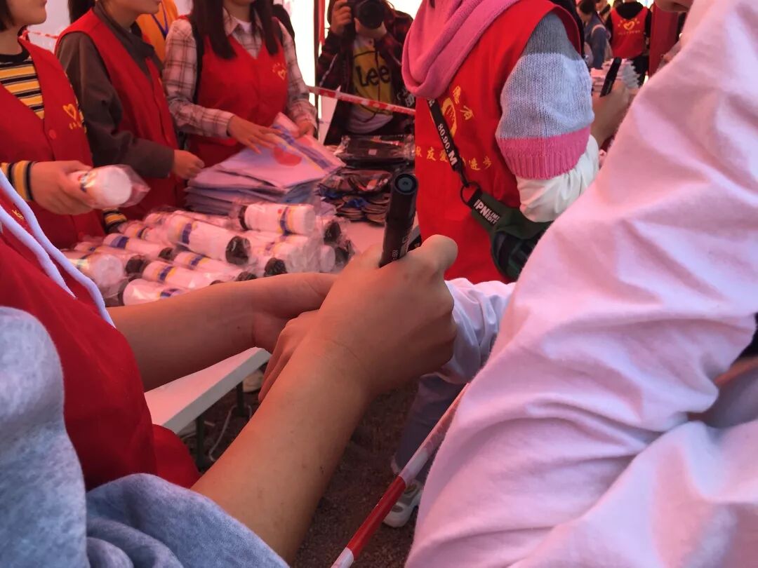 从上午9点到下午6点半,志愿者的工作一直没有停下,志愿者们一直坚持着,一直充满着热情引导参赛者们完成检录。