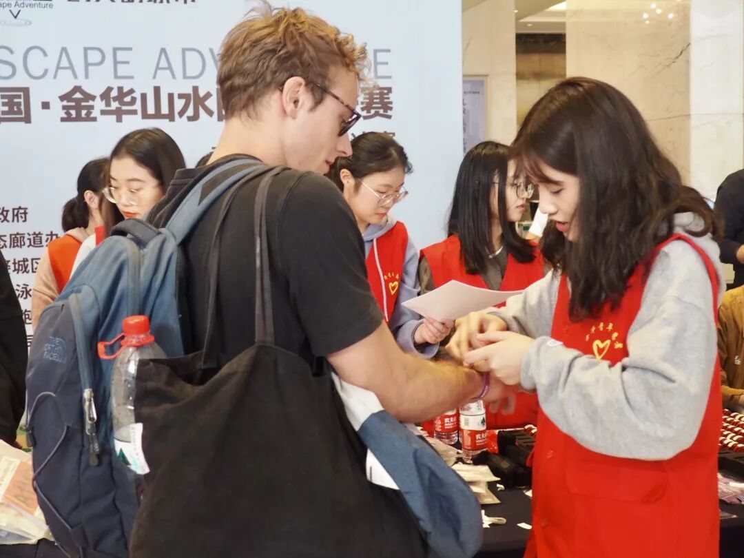 10月19日上午8点,31名志愿者分成两组,分别前往雷迪森伟达酒店和琅琊镇进行志愿活动,为金华山水四项公开赛决赛的正式举行做准备。