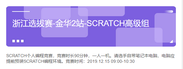 因这次报名参加比赛的人员超出大赛的预算,为了让更多的孩子参与,将在12月15日再举办一场浙江选拔赛金华赛区的比赛。