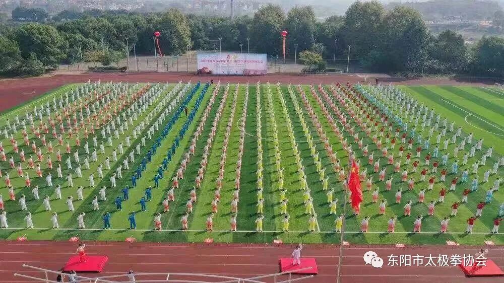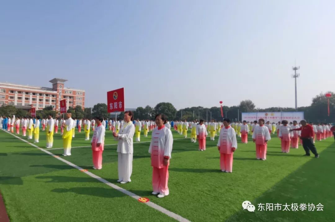 丹桂飘香,橙黄橘绿。10月19日,“2019年金华市全国百城千村健身气功交流展示大会暨第二届金华市健身气功站点联赛”在养生福地武义县实验中学隆重举行,参加活动的有来自金华各地区12支代表队共1000余人。东阳市代表队由市太极拳协会组织,健身气功部部长吴兰香任领队率领50人,参加本次展示交流及联赛活动。