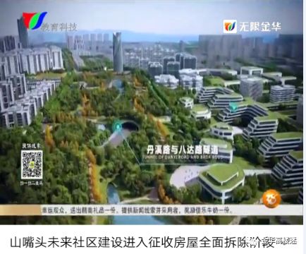在电视画面中,金华高楼迷(微信公众号:金华高楼迷)注意到:山嘴头未来社区的规划图中,出现了丹溪路与八达路隧道的画面。