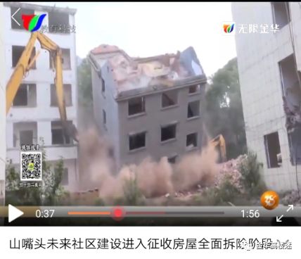 下车门是金华开发区西关街道山嘴头社区下面的一个自然村,18日下午,这里的一栋房屋经过大型机械拆除后轰然倒下,这标志着山嘴头未来社区建设进入征收房屋全面拆除阶段。