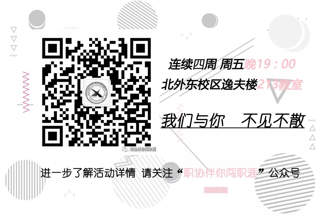 · 是由北外就业创业中心为学生提供领域发展信息和就业指导,而专门邀请毕业的学长学姐进行经验分享的活动。