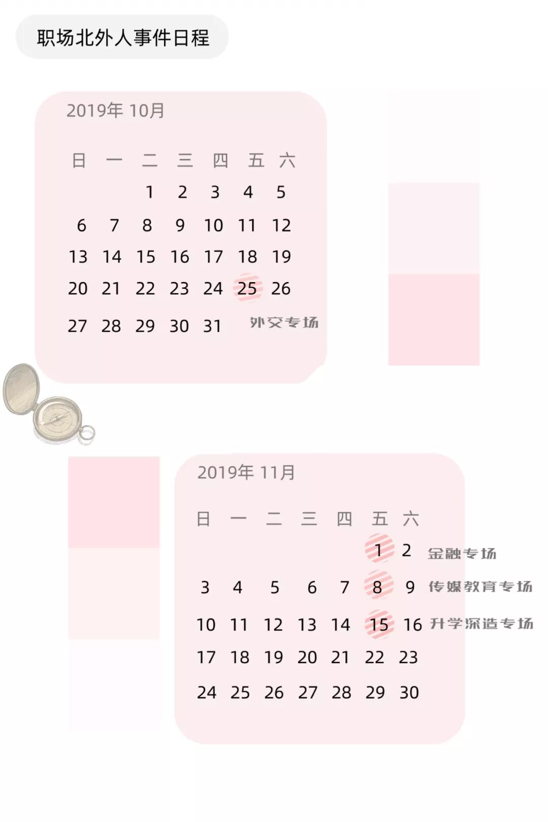 最后 ~ 小编担心你记错时间,所以贴心送上职场北外人系列活动 专属日历 ~ 一定要记得好好保存哦 ~