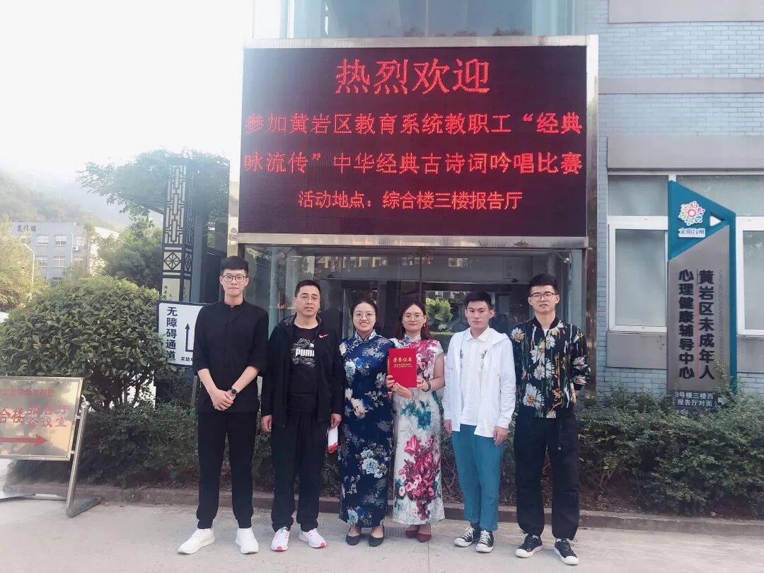 为了迎接建国七十周年大庆,弘扬中华优秀传统文化,增强黄岩区教职工对经典古诗词的热情与传承意识。区教育局、区教育工会于10月19日举办了以“赏中华诗词、寻文化根基、品生活之美”为宗旨的中华经典诗词吟唱比赛。在北京师范大学台州实验学校工会的带领下,语文教师林星宇、数学教师王跃臻、科学教师王梓源、英语教师孙轶凤、章珈菏,在本次比赛中取得佳绩。