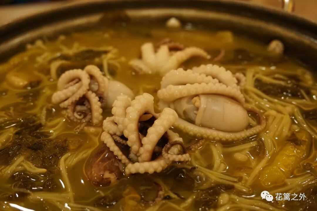 秋天有新鲜的望潮可吃,望潮是特殊品种的小章鱼,各处多有赞美它弹滑味浓,可我一口咬下去,章鱼的触须确实是脆蹦蹦,章鱼体内的汁水喷涌而出,浓鲜而近腥,直冲脑壳,实在是觉得有些消受不起,吃第二个都需要提前做点心理建设,倒是配菜的酸菜金针菇好吃,不过只要酸菜品质好,这个菜也很难做得难吃呀。