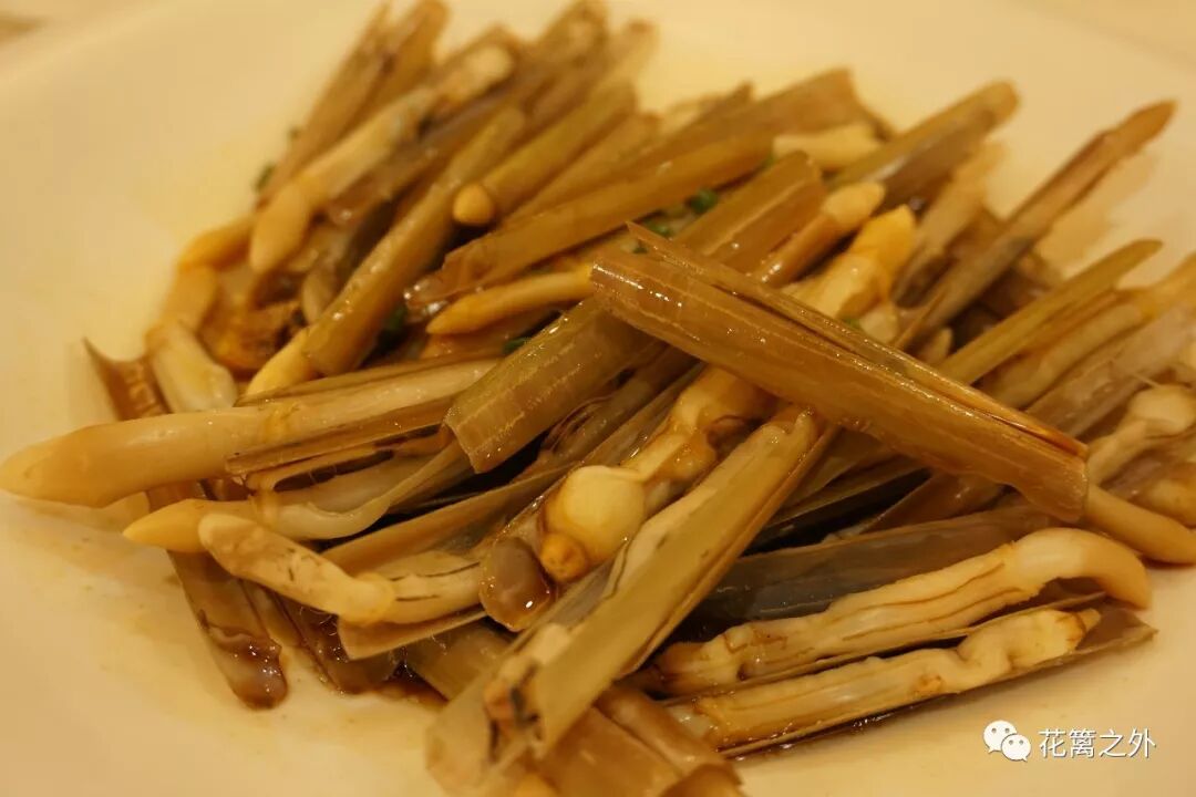 竹蜻近似于更长更大的蛏子,滚水烫熟,肉质鲜嫩,汁水饱满,浇上葱油增香提味,甚是鲜美。