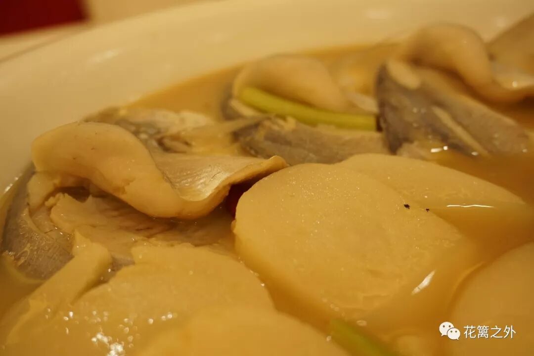在台州要吃家烧,吃那种淡淡的咸香味。鲳鱼家烧年糕,年糕软糯,吸饱了鲳鱼肉鲜美的汤汁,鲳鱼肉质肥厚,雪白细嫩。作为糯米制品爱好者,实在是获得了极大的满足。