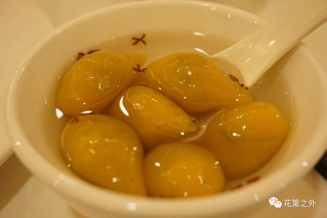 最后点了一道甜食山粉圆,一个个绒黄的水滴状团子漂浮在桂花间。糯米皮柔韧,芝麻馅里加了薄荷糖浆,香甜清新。炉子同学奇怪的食物避讳中有一条是吃薄荷而不吃薄荷糖浆,所以一大盆山粉圆她尝了一个,剩下的都归我了。
