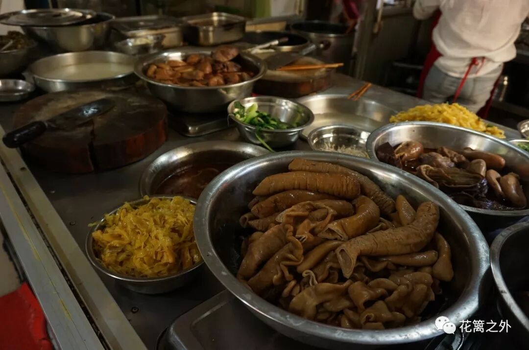 肠子和猪肚都卤得入味。雪白的年糕煮得软软的,带着新鲜糯米制品的香甜。面条是手打面,爽滑劲道。年糕如此好吃,询问店家竟然可以单买,炉子立时采购了两大筒。