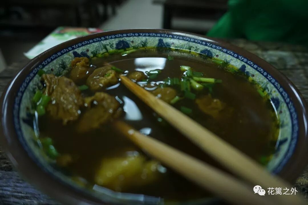 骨头汤味看起来汤色清淡,可滋味醇厚。千张层层裹紧做成的面结,我表示毫无兴趣,可炉子却是好奇而一见钟情,正好都给了她。咖喱牛肉用勺一捞,肉是小块,炖烂,咖喱微辣,味浓,没想到在台州这样清淡的风味中竟会出现泉州牛排一般的辛香浓腻。