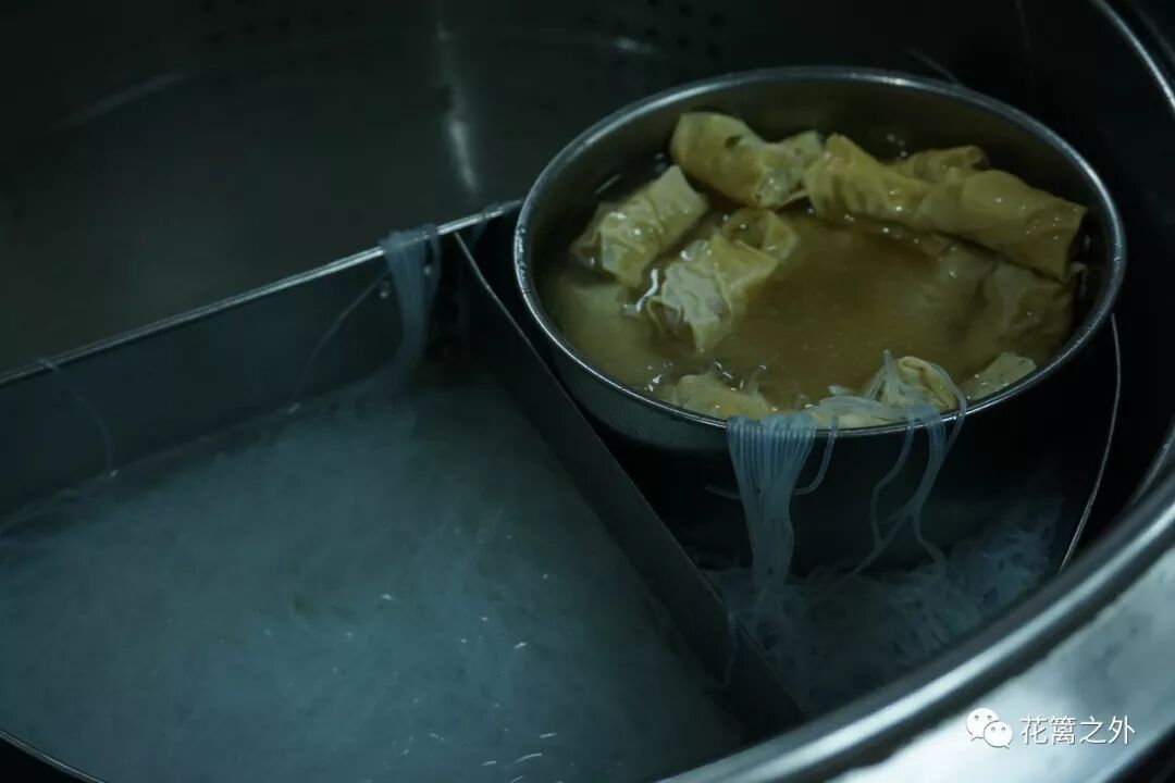 大锅里热着骨头汤,粉丝和面结。点了四个炊圆,一碗骨头汤加粉丝和面结,一碗咖喱牛肉。炊圆蒸熟后有些软,但糯米软滑,肉馅调味极佳,汤汁饱满,极度鲜美。在每人分食二只之后,对视一刻,举手表示老板再要四个。