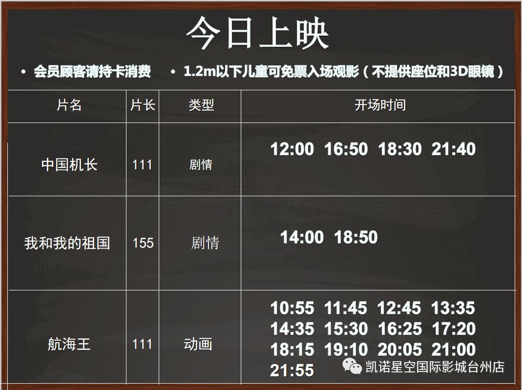 【明日影讯】凯诺星空影城台州店10月21日(星期一)