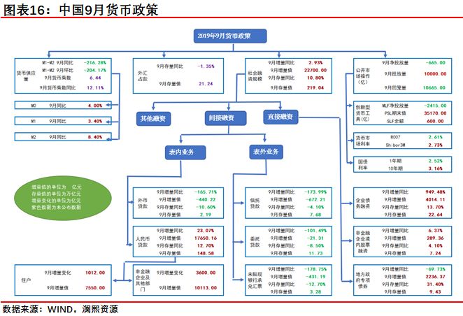 【20191015 中国9月货币政策】中国9月M2同比增8.4%,预期8.2%,前值8.2%。9月新增人民币贷款1.69万亿元,同比多增3069亿元,预期1.42万亿元。9月社会融资规模增量为2.27万亿元,预期1.8万亿元,前值1.98万亿。9 月份社会融资规模增量为2.27万亿元,远高于预期与前值。9月社融多增主因人民币贷款中的企业贷款,且其中短期贷款贡献更大( 8 月增量-355 亿,9 月增量 2550 亿),财政发力,专项债配套融资发力、央行降准支持以及隐形债务置换是主要原因。