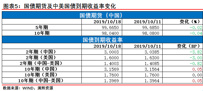 【20191012-20191018 国债期货】国债期货普遍下跌,5年期报99.6650(-0.02%)、10年期报98.0400(-004%),中国国债到期收益率2年期报3.0003%(-3.82BP)、10年期报3.1569%(+0.05BP)。