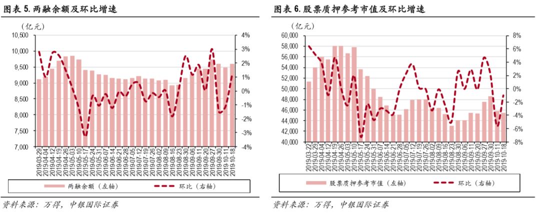 信用:截止到10月19日,市场股票质押参考市值46511亿元,环比上周下降0.00%;两融余额9647亿元,环比上周增加0.48%。