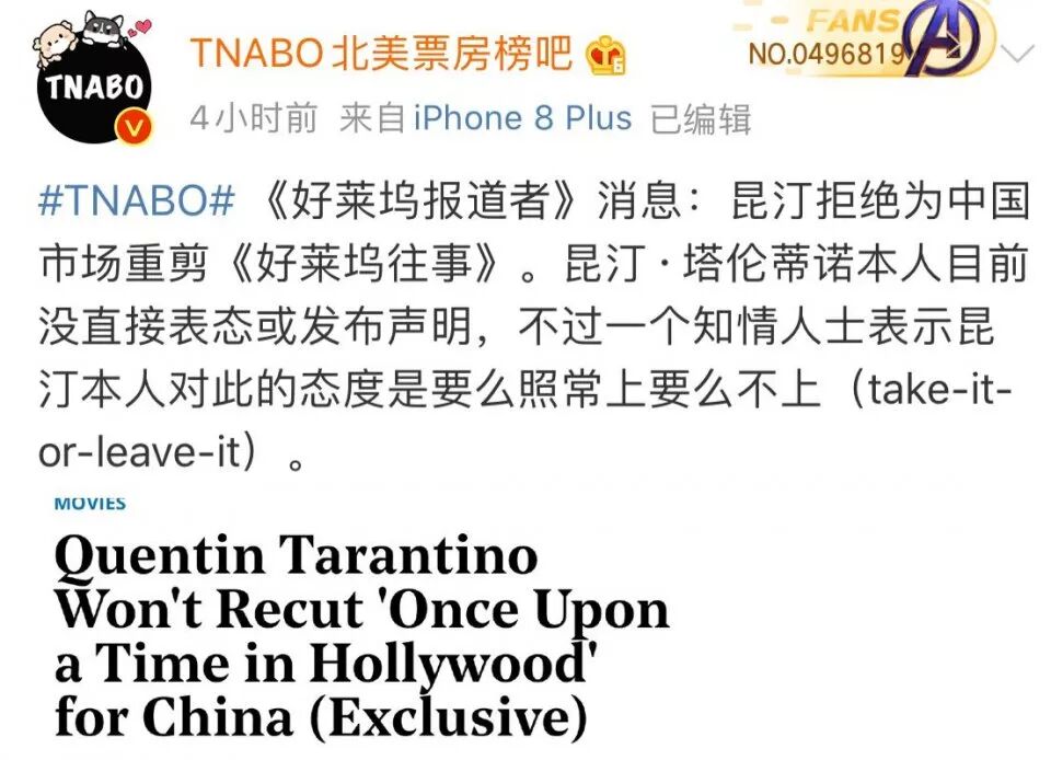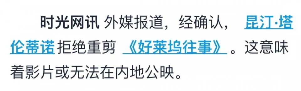 之后也有媒体引用《综艺》的报道称,只要昆汀做出一些删减,影片仍旧可以在中国内地照常上映。