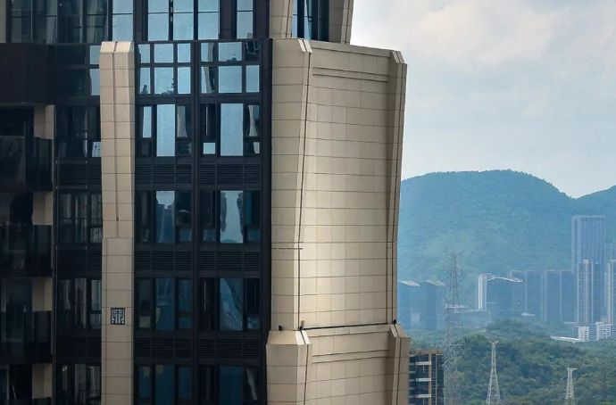 据开发商软文介绍,项目外立面采用15万块陶板覆盖,由300位工人耗时7个月完成。