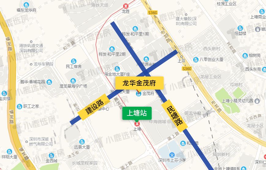 从地图上看,离金茂府较近的有中海锦城、鸿荣源尚峻、曼海宁花园、特发和平里二手次新小区,定位刚需或偏改善,另外还有恒大岳盟工业区旧改、恒裕上塘项目。