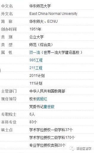 2提起华东师范大学,大家应该知道她是中国顶尖学府,由教育部直属。位列世界一流大学建设高校A类,先后入选“985工程”、“211工程”。在中国大学排名中,华东师范大学也一直位居前列,师范类院校中仅次于北京师范大学排名第二,中国仅有的两所评级为“世界高水平大学”师范院校之一。华东师范大学也是培养优秀校长的“黄埔军校”。