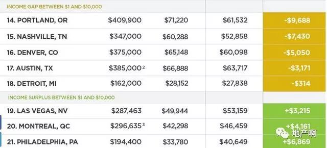 而加拿大第二的多伦多则是第11,中位房价为$481,203美元,需要的年收入为68,617美元,但买房的平均中位年收入为$49,495美元,年收入还差$19,121美元。
