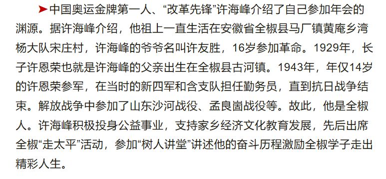 中国奥运金牌第一人、“改革先锋”许海峰介绍了自己参加年会的渊源