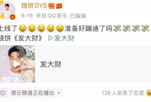 在德云社,发布单曲的不仅有张云雷、孙越,郭德纲的儿徒烧饼(朱云峰)也曾在线上,发布过自己的单曲《发大财》。