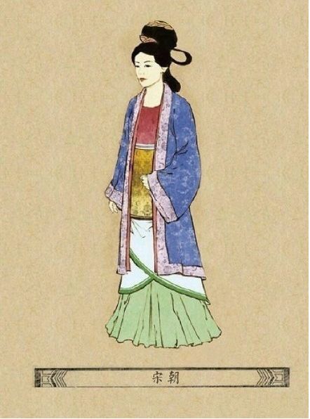 宋代,由于“程朱理学 "的思想禁锢,服饰文化不再艳丽奢华,而是简洁质朴。宋代女装拘谨、保守,色彩淡雅恬静,襦衣、褙子的 "遮掩 " 功能加强。