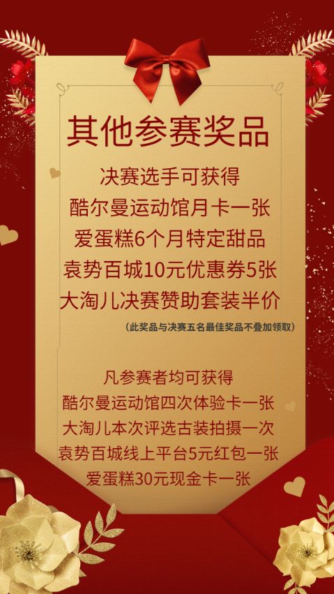 (此奖品与决赛5名最佳奖品不叠加领取)