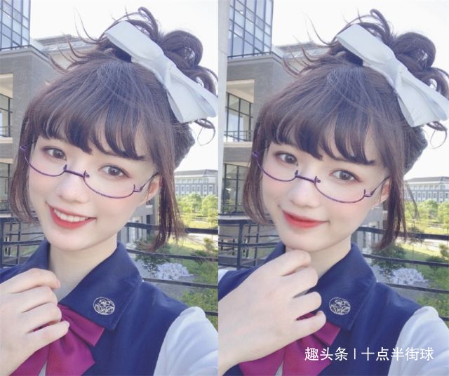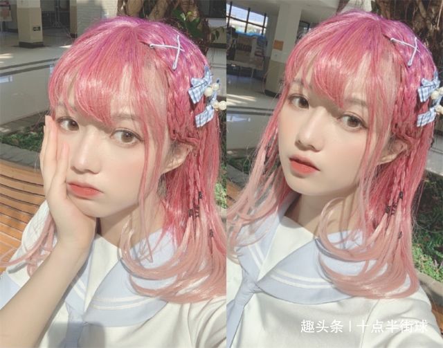 党妹的底子很好,素颜也能看出五官的精致,化妆打扮之后,二次元的萌妹颜值非常高。