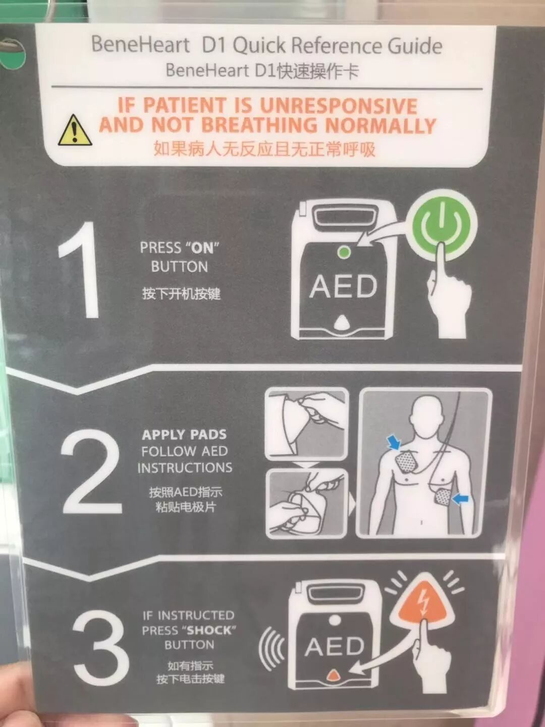 除颤过程中,AED的语音提示和屏幕显示使操作更为简便易行,AED对多数人来说,只需简单的培训便能操作。