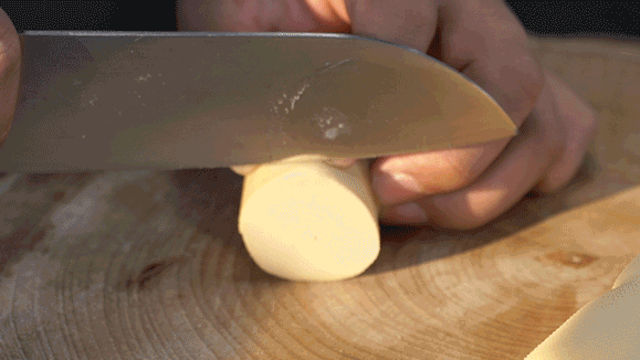 素鸡切成一厘米厚的片,西葫芦切去两头对半划开切成薄片