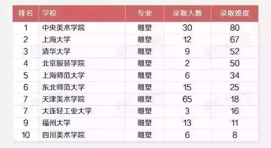 “雕塑”专业对高考分数要求最高的十所高校
