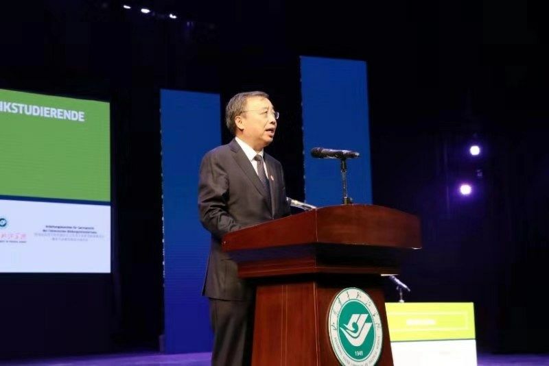 大赛开幕式上,张书明代表学校致辞。他向主办单位和参与院校的到来表示热烈欢迎,对学校办学特色进行了介绍,在对中德历史文化交流典型事件进行回顾的基础上,表达了对加强今后合作交流的热切期望。歌德学院(北京)副院长杨士鹏(Jan SPRENGER)、教育部外指委德分委副主任委员、大连外国语大学副校长丛明才、德国驻华大使馆文化事务处副处长米星辰(Yildiz MILLER)分别致辞。