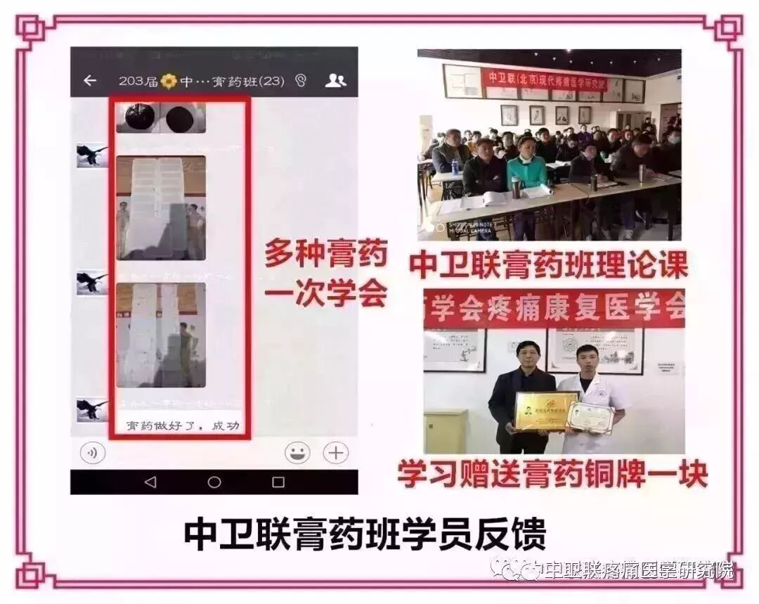 我们中卫联也将不负众望,技术毫无保留、配方全部公开。坚持理论联系实际,课堂讲授与操作相结合,学员亲手操作,确保每位学员能够独立制作各种膏药。通过参加三天的学习班,都可以做出有疗效的好膏药!