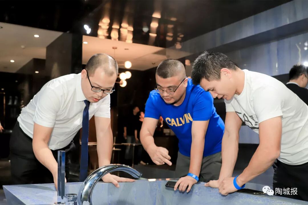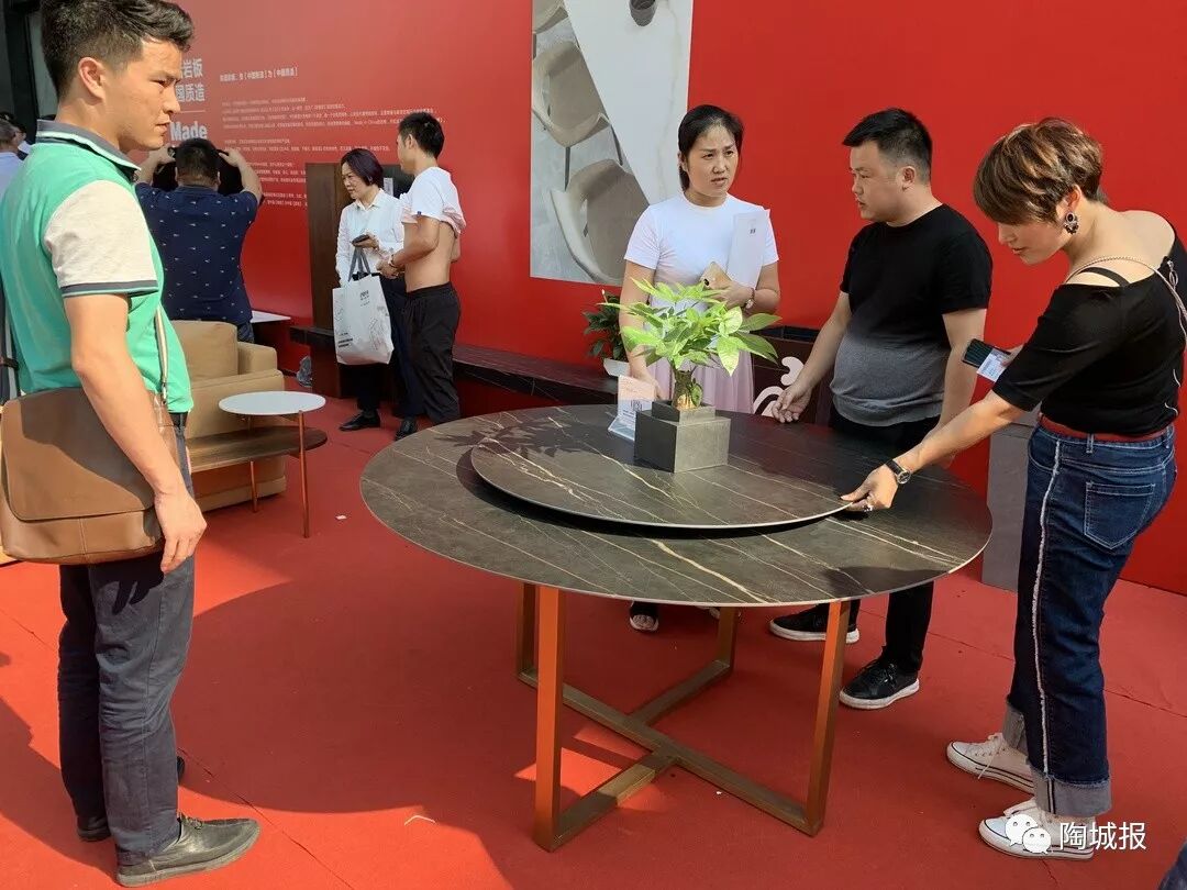 陶博会期间,依诺展示了茶几、岛台、橱柜、浴室柜、玄关柜等家具上的岩板应用,吸引了众多客商参观。