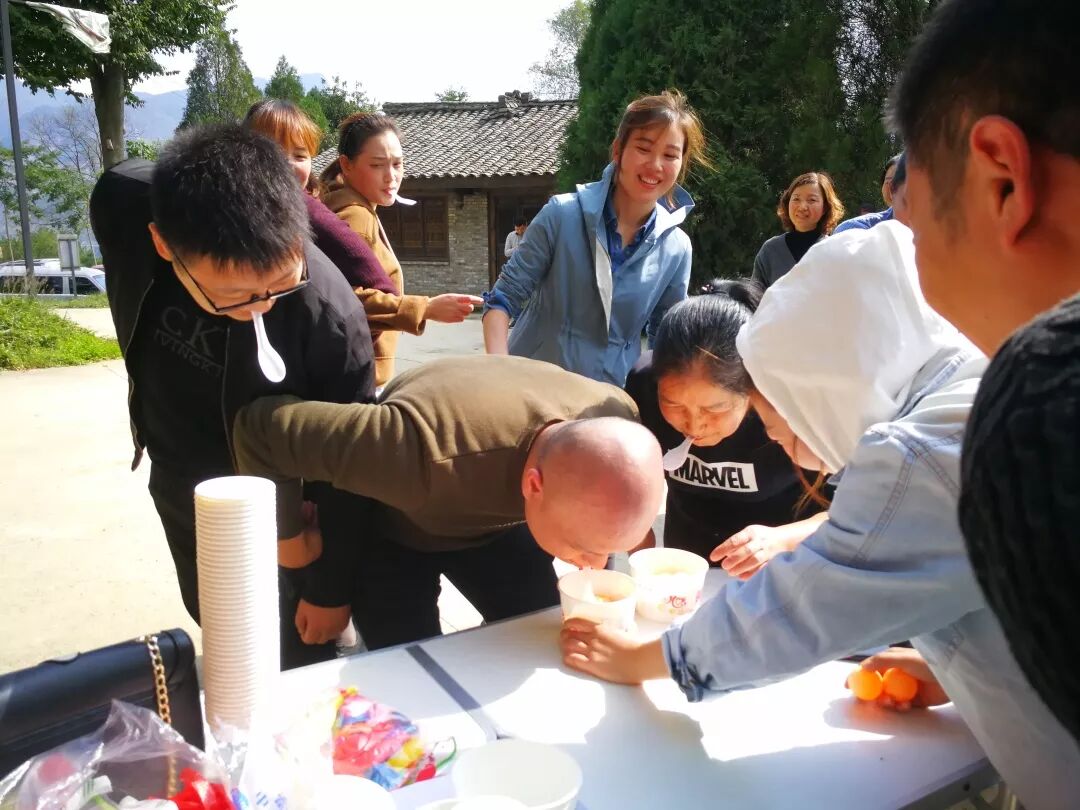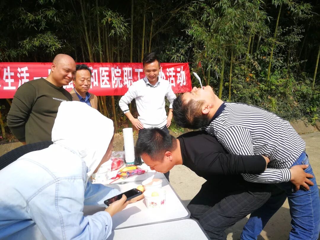 当天在玉皇观茶园,共进行了香蕉变刺猬、口唇传筷、纸杯传递、夹硬币、小鸡吃米五个项目的团队游戏活动。医院职工通过团队分组开展竞争,每组8人进行分工,整个活动激奋刺激,讲究团队协同,通过队员的主动参与,增强团队竞技,加强团队互动,释放工作压力。