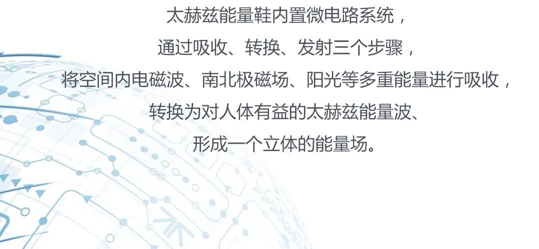 太赫兹能量鞋 太赫兹是一种存在于自然界中的属于光和电磁波的射线,他的波频是10的12此方赫兹,被成为超远红外线,他的高频能量波可以影响人的DNA分子的振动频率,变无序的波频为有序的波频,这种有序的波频就是一种能量,可以因此纠正人体不正常的生物电场,提高修复受损的细胞,提高细胞的活性。